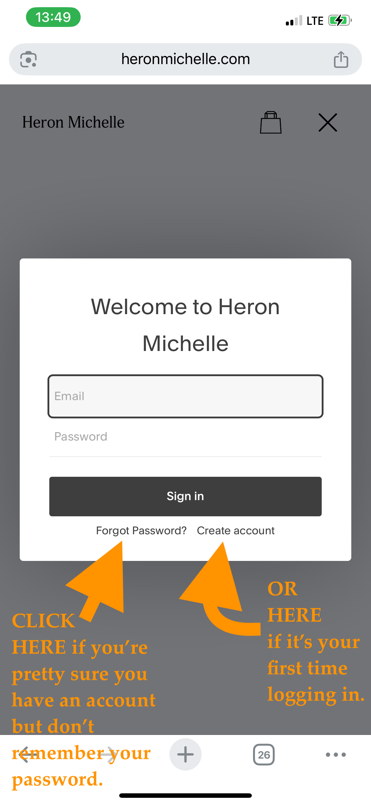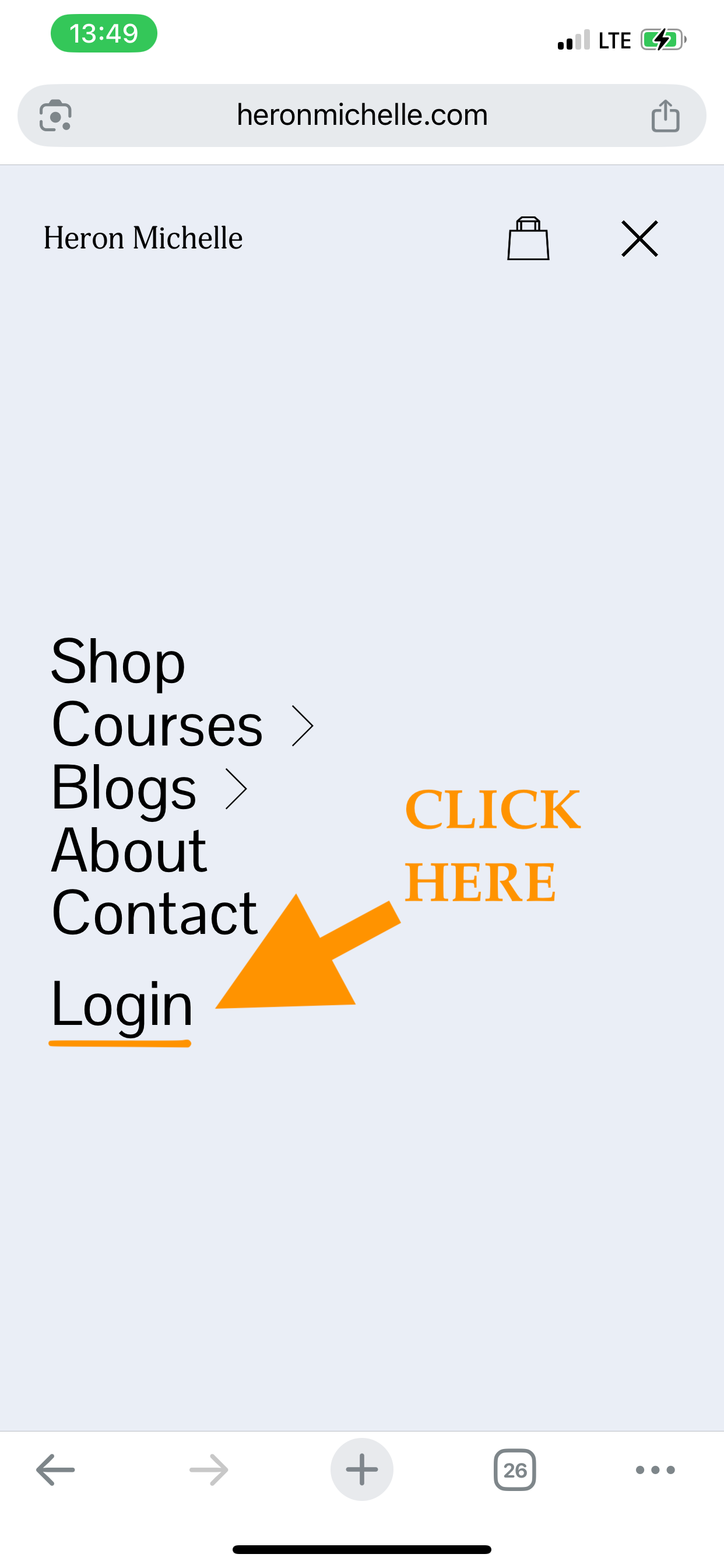 First, you’re going to go to the homepage of heronmichelle.com and click “Login” in the upper right corner.