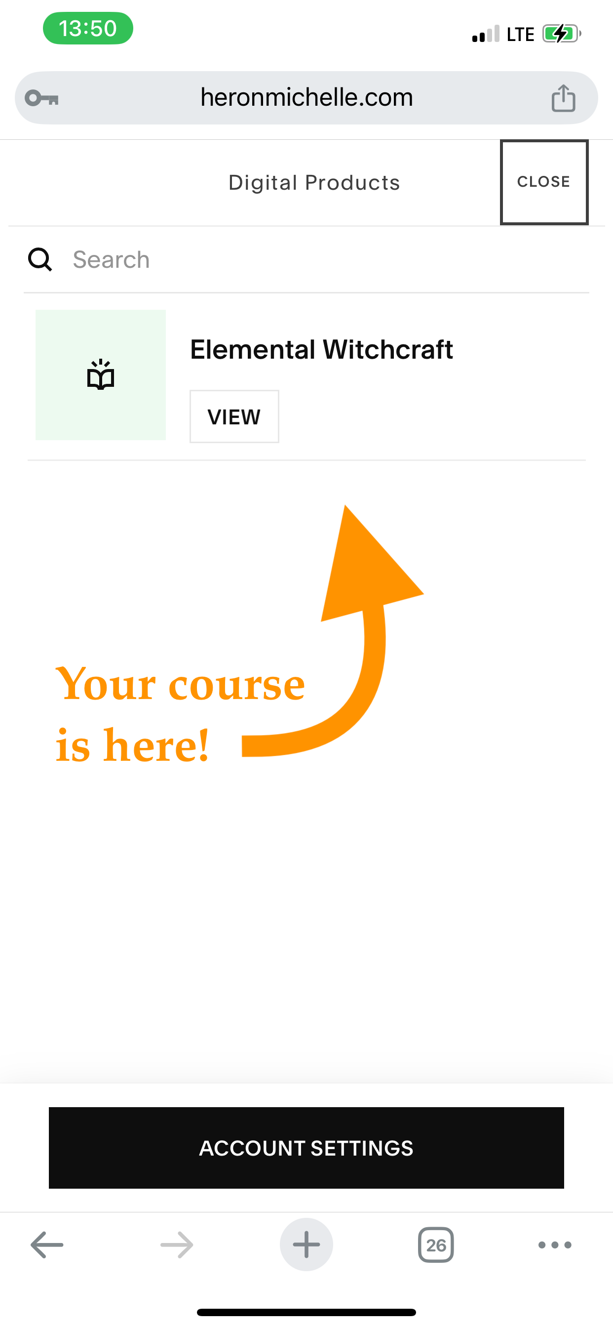 Once you’ve created your account/logged in, you’ll find your course in the Digital Products panel that will appear on the right side of the screen.